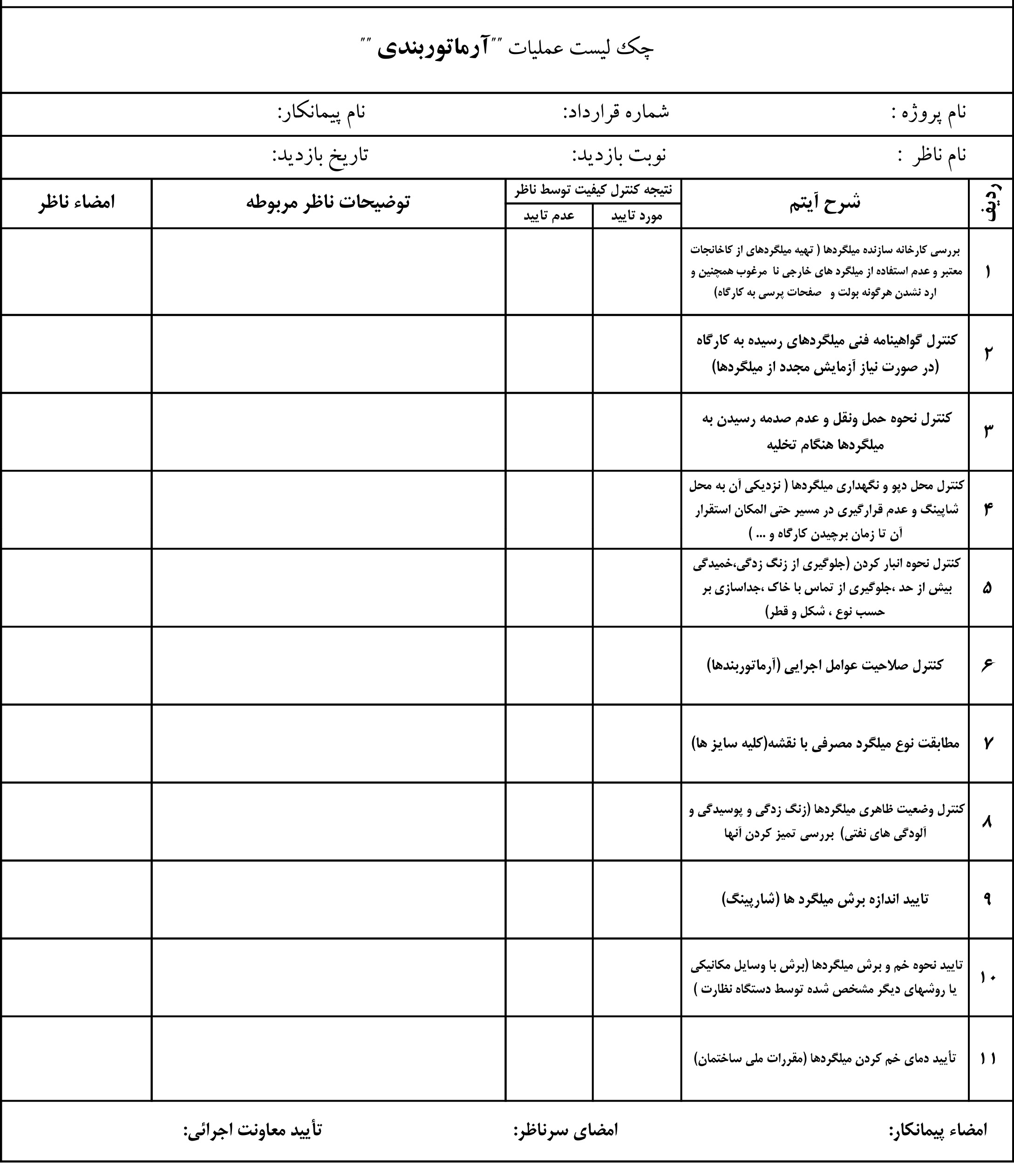 شما با دانلود این چک لیست می توانید گام به گام مراحل آرماتوربندی را کنترل و بررسی نمایید.